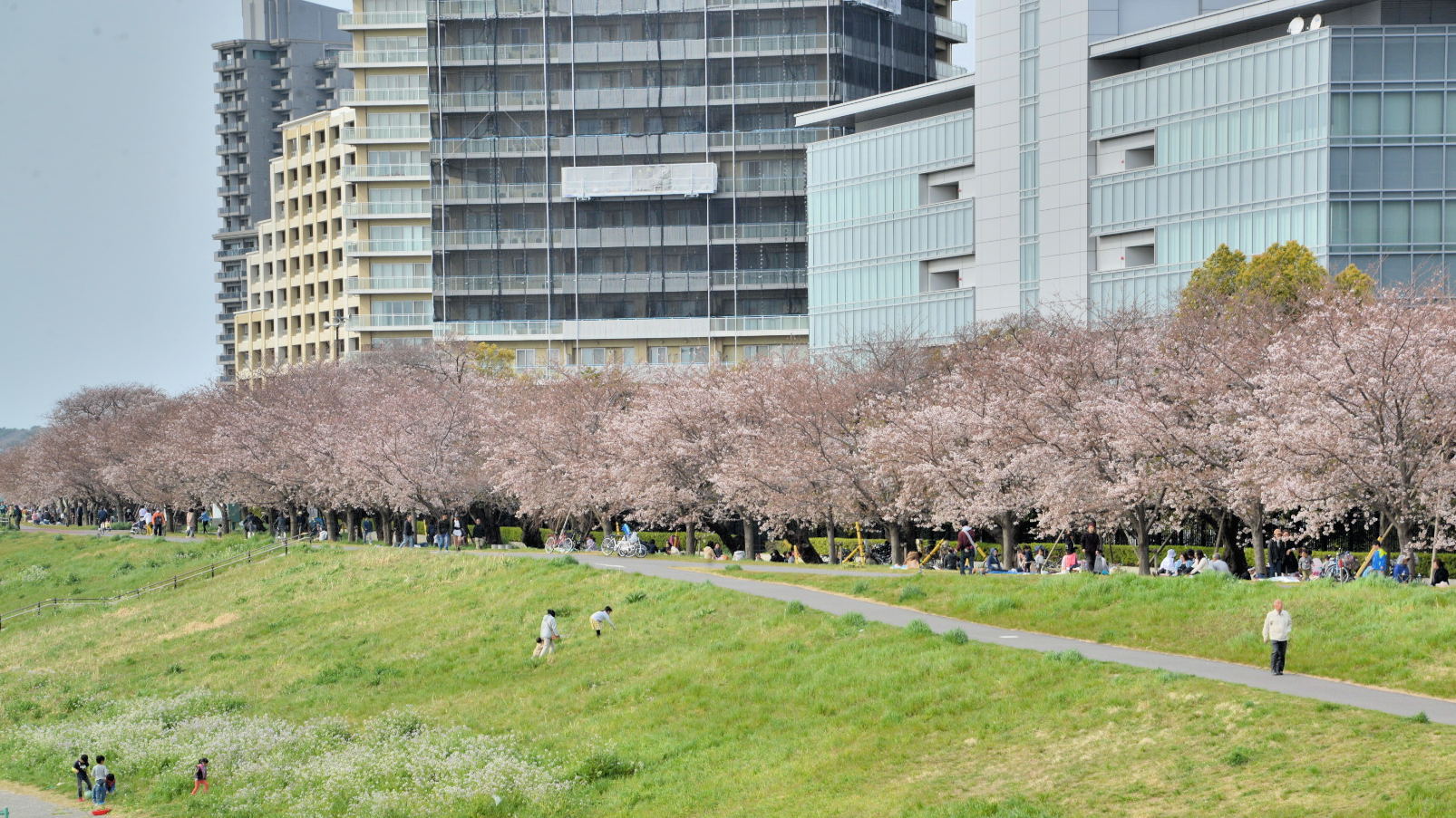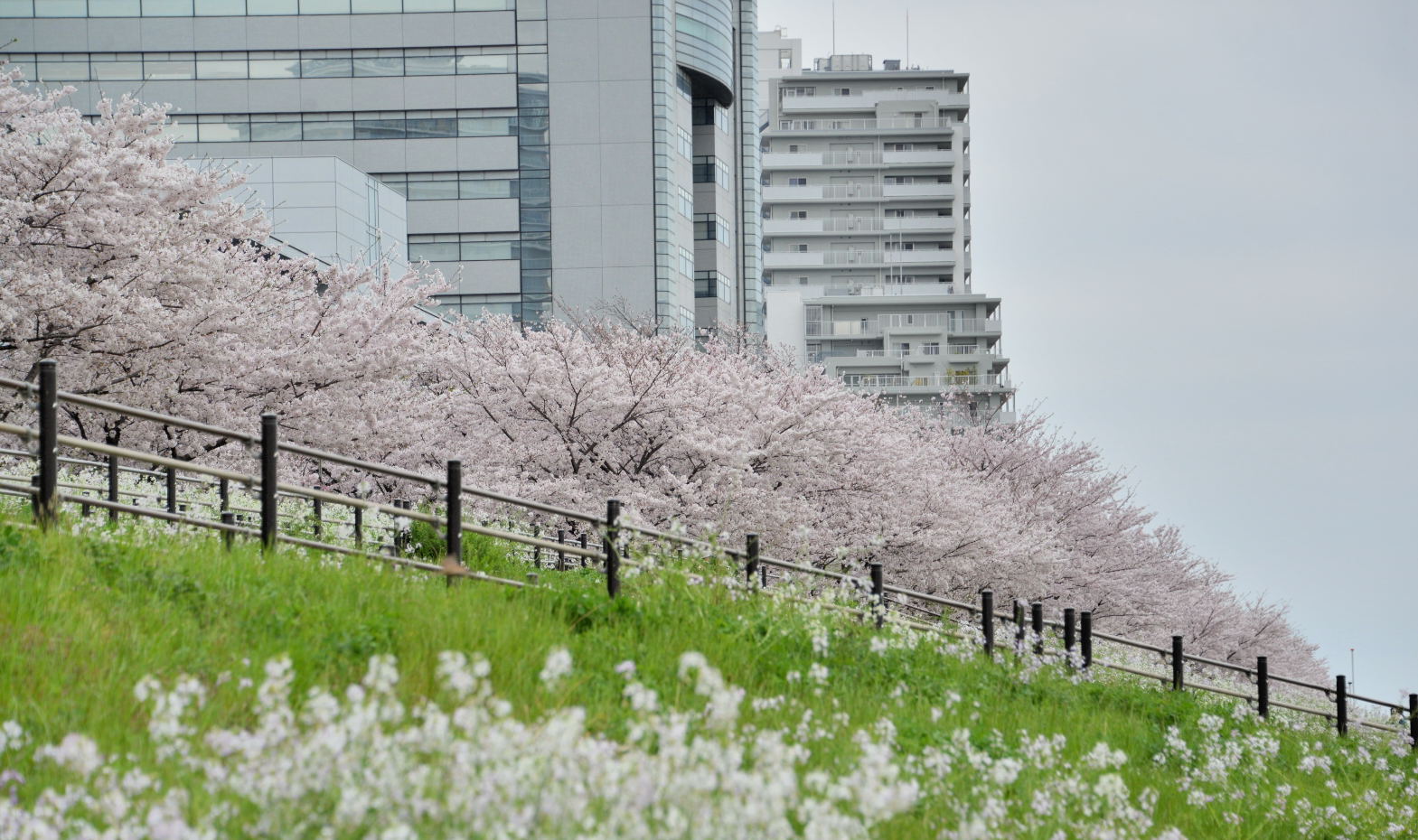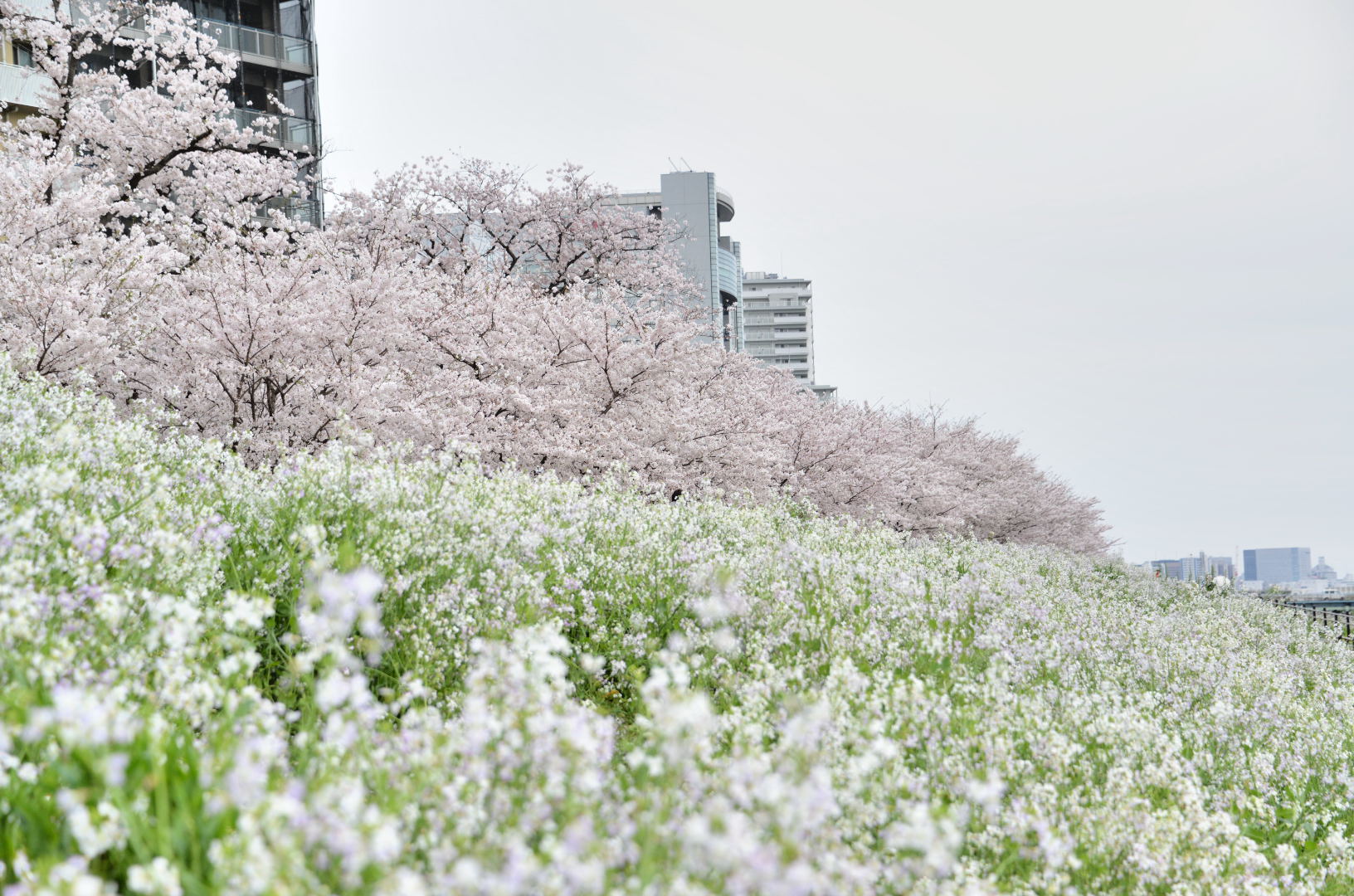 背景は、canon本社と高層マンション群の連なりです。