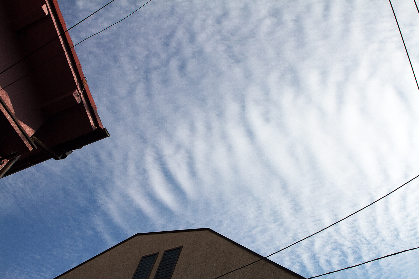 あるいはうろこ雲+波状雲の組み合わせも考えられます。とりあえず写真をご覧ください。