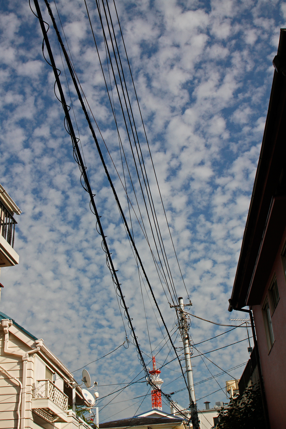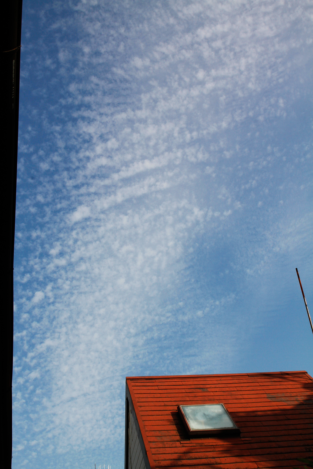 秋を代表するうろこ雲(巻積雲)かひつじ雲(高積雲)と思えます。雲片が大きくて中層に浮かんでいるので後者かもしれません。